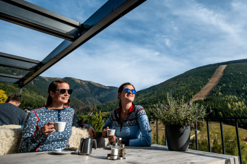 Begleiten Sie uns, um die schönsten Ausblicke auf das Riesengebirge zu entdecken! Von unserem modernen Panorama-Restaurant aus sehen Sie nicht nur den zweithöchsten Berg in Böhmen - Luční hora (1555 m über dem Meeresspiegel), sondern auch den Stoh-Berg, den 3 km langen steilen Kamm Kozí hřbety, Lovecký důl und die berühmte Červinkova mulda.