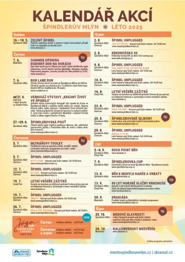 Entdecken Sie die interessantesten Veranstaltungen in Spindleruv Mlyn und Umgebung! Wir geben Ihnen einen Überblick über Kulturfestivals, Konzerte, Workshops, Konferenzen und Sportveranstaltungen. Planen Sie und bleiben Sie auf dem Laufenden über das Geschehen!