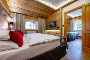 Diese Apartments (Familienzimmer) bieten immer 2 separate Schlafzimmer. Der Preis für das Apartment ist einheitlich, unabhängig davon, wie viele Personen und in welchem Alter die Personen sind. Genießen Sie Komfort und Privatsphäre mit Familie oder Freunden in einem geräumigen und stilvoll eingerichteten Apartment. Ideal zur Entspannung und für unvergessliche Momente in einer schönen Berglandschaft.