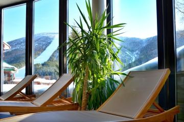 Enjoy relaxation with breathtaking mountain views. Our wellness center offers not only a pool, saunas, and a hot tub, but also massages, spa treatments, and cosmetic care. After a demanding day on the slopes or in the summer heat, you can completely unwind and recharge here. And the best part is, with the view of the Krkonoše Mountains from our windows, you'll feel like you're on top of the world!